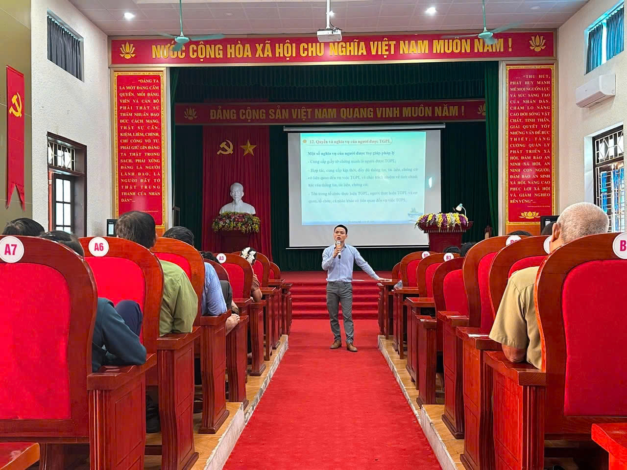 Với tinh thần cầu thị và mong muốn tìm hiểu pháp luật, ngay trong buổi sáng, đông đảo người dân địa phương đã có mặt từ sớm. Sự kiện này khẳng định mối quan tâm lớn của người dân đối với các vấn đề pháp lý thiết thực và các chính sách liên quan mật thiết đến cuộc sống. Báo cáo viên tại Hội nghị là ông Phan Văn Tuân, Phó Trưởng phòng Quản lý trợ giúp pháp lý, Cục Phổ biến, giáo dục pháp luật và Trợ giúp pháp lý, Bộ Tư pháp. Là cán bộ đã gắn bó nhiều năm với công tác trợ giúp pháp lý, báo cáo viên đã trình bày cô đọng, dễ hiểu, sử dụng ngôn ngữ gần gũi, phù hợp với đồng bào dân tộc thiểu số để chuyển tải những nội dung cốt lõi về dịch vụ trợ giúp pháp lý miễn phí của Nhà nước, bao gồm: bản chất, ý nghĩa của hoạt động; diện đối tượng được thụ hưởng; quyền và nghĩa vụ của người được trợ giúp pháp lý; cùng với trình tự, thủ tục yêu cầu trợ giúp pháp lý. Đáng chú ý, mỗi nội dung đều được minh họa bằng các ví dụ thực tiễn liên quan đến đời sống thường nhật của người dân, giúp người nghe ghi nhớ kiến thức để vận dụng vào thực tiễn cuộc sống.