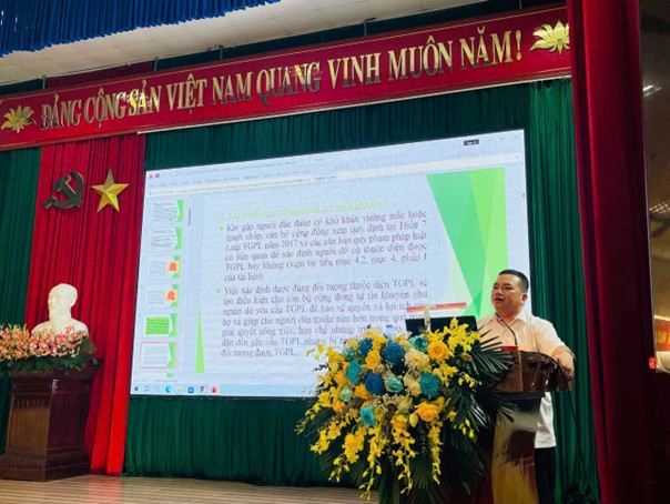Báo cáo viên tại Hội nghị, ông Hoàng Trọng Nghĩa (Phó Giám đốc Trung tâm trợ giúp pháp lý nhà nước Bắc Ninh số 1) giới thiệu những nội dung mới của pháp luật về trợ giúp pháp lý; trình tự thủ tục trợ giúp pháp lý; diện người được trợ giúp pháp lý, quyền và nghĩa vụ của người được trợ giúp pháp lý; chia sẻ mô hình, cách làm hay trong việc triển khai hoạt động tại cơ sở; thảo luận về các khó khăn, vướng mắc thực tiễn và đề xuất giải pháp nhằm mở rộng phạm vi, nâng cao chất lượng dịch vụ trợ giúp pháp lý cho đồng bào dân tộc thiểu số. Bên cạnh đó, báo cáo viên cũng lồng ghép vào nội dung tập huấn những tình huống xuất phát từ những vụ việc trợ giúp pháp lý xảy ra tại địa phương như: tranh chấp đất đai, thừa kế, ly hôn, kết hôn, tội phạm về ma túy, trộm cắp tài sản, cho vay nặng lãi; về đền bù giải phóng mặt bằng, về thu hồi đất, về chuyển đổi mục đích sử dụng đất, chuyển quyền sử dụng đất…và một số vụ việc trợ giúp pháp lý thành công, hiệu quả.