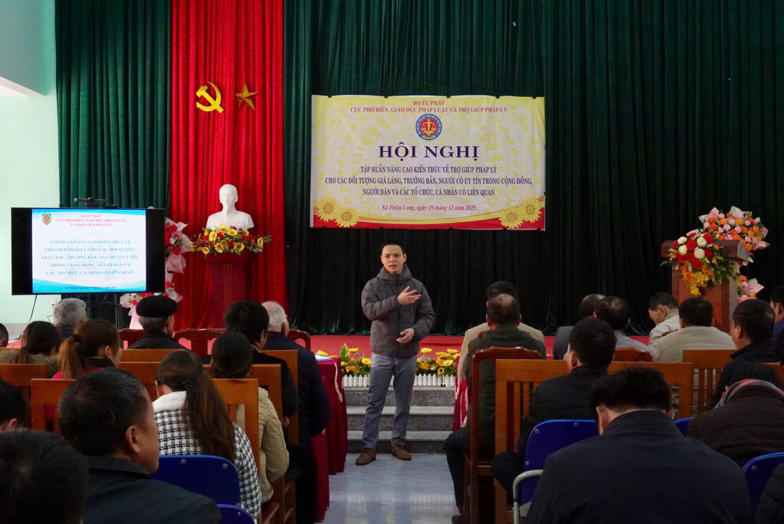 Nâng cao nhận thức về quyền được trợ giúp pháp lý miễn phí cho người dân vùng núi Lạng SơnNgày 19/12/2025, tại các xã Thiện Long, Thiện Hòa và Thiện Thuật thuộc tỉnh Lạng Sơn, Cục Phổ biến, giáo dục pháp luật và Trợ giúp pháp lý (Bộ Tư pháp) đã tổ chức thành công các Hội nghị tập huấn nâng cao kiến thức về trợ giúp pháp lý. Các hội nghị thu hút sự tham gia đông đảo của đại diện Trung tâm Trợ giúp pháp lý nhà nước tỉnh Lạng Sơn, chính quyền địa phương, cùng già làng, trưởng bản, người có uy tín trong cộng đồng, người dân và các tổ chức, cá nhân có liên quan trên địa bàn.Đưa trợ giúp pháp lý miễn phí vượt núi, băng rừng đến với người dân