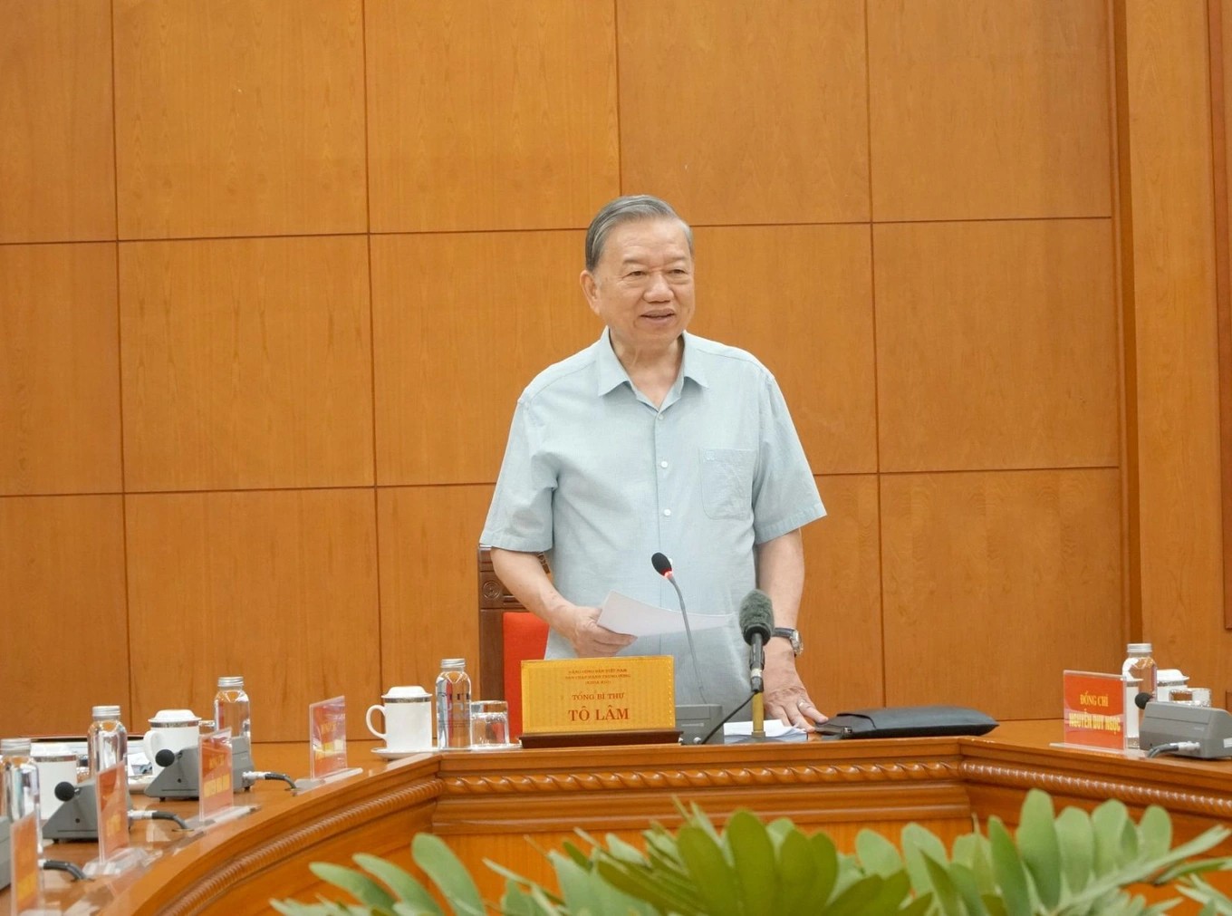 Tổng Bí thư Tô Lâm chủ trì buổi làm việc với Ban Thường vụ Đảng ủy Chính phủ về một số nội dung của 4 dự án luật (Ảnh: Cổng TTĐT Đảng Cộng sản).