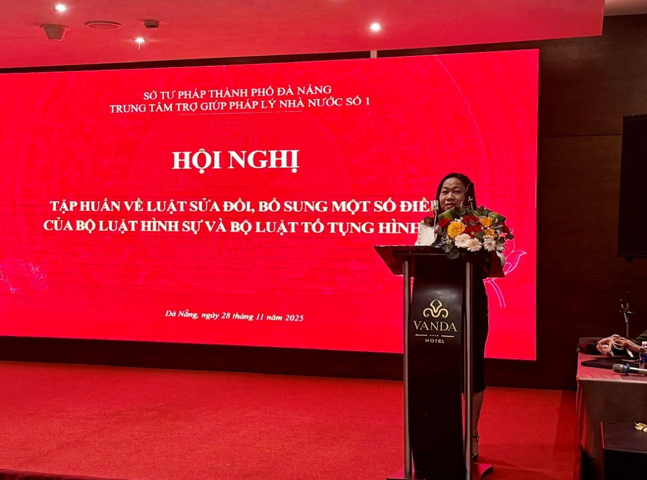 Thực hiện Chương trình công tác năm 2025 của Trung tâm Trợ giúp pháp lý Nhà nước số 1 thành phố Đà Nẵng; Chương trình mục tiêu quốc gia phát triển kinh tế – xã hội vùng đồng bào dân tộc thiểu số và miền núi trên địa bàn thành phố Đà Nẵng giai đoạn 2024–2025 và Kế hoạch số 92/KH-TGPLNN ngày 26/11/2025, nhằm kịp thời cập nhật, bồi dưỡng kiến thức pháp luật cho đội ngũ người thực hiện trợ giúp pháp lý, ngày 28/11/2025, Trung tâm Trợ giúp pháp lý Nhà nước số 1 thành phố Đà Nẵng đã tổ chức Hội nghị tập huấn về Luật sửa đổi, bổ sung một số điều của Bộ luật Hình sự và Luật sửa đổi, bổ sung một số điều của Bộ luật Tố tụng hình sự.